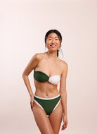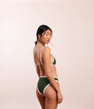 The Farrah bikini is equal parts sporty, playful & bold. Need we say more? Inspired by 70s icon Farrah Fawcett, the Farrah taps into her special brand of California cool. This suit features a triangle top with adjustable straps & a mid-rise, medium coverage bottom.